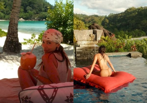 Nas fotografias, a paisagem tem chamado a atenção de internautas pelo oceano azul cristalino e pela beleza litorânea. Na ilha, Anitta está hospedada em um hotel com direito a piscina de borda infinita.