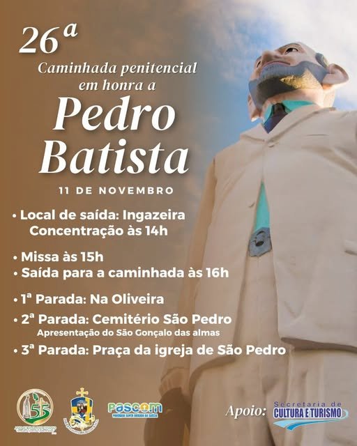 Nesta terça-feira 11 de novembro feriado municipal em Santa Brigida a paroquia de Santa Brigida da suecia realizará a 26ª caminhada penitencial em memória do conselheiro Pedro Batista da Silva.