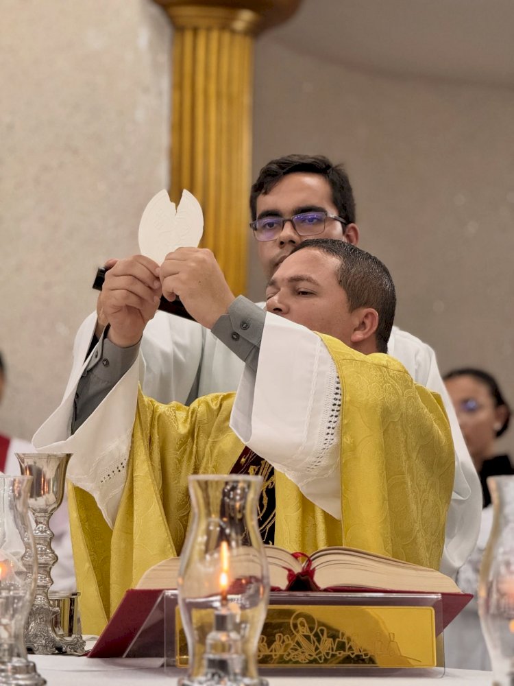 O paraco Padre Gilmar convidou para celebrar a primeira noite o Padre Jorge Frances, que celebrou com grande alegria.