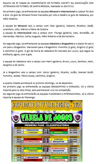 Rodada do Campeonato de Futebol Society da Associação dos Veteranos de Santa Brigida